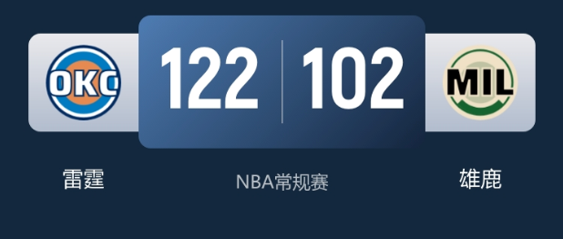 1月22日消息,NBA常规赛焦点战,雄鹿主场迎战联盟第一的雷霆。雷霆全程掌控比赛节奏,最终客场轻取雄鹿,继续稳固榜首位置。