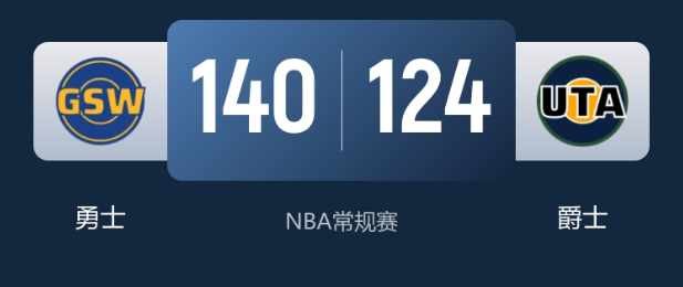 爵士(15-33,主场落败):森萨博22分3助3断、贝利19分7板4助2断、乔治19分6板7助2断,多人得分上双但防守端难挡勇士外线攻势,追分未果落败。