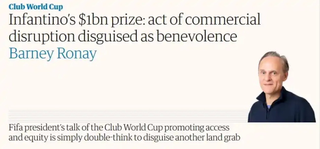 然而,这一看似慷慨的奖金分配方案却引发了卫报记者Barney Ronay的强烈抨击。他在文章中直言不讳地指出,世俱杯庞大的奖金总额虽然表面上很吸引人,但实际上却对足球生态产生了严重的负面影响,甚至将其形容为“披着善意外衣的商业颠覆行为”。
