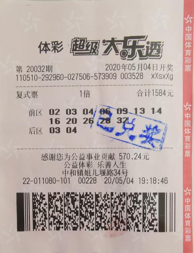 5月4日,“9.9亿元大派奖”第三期开奖,体彩大乐透第20032期,前区开出号码02、03、09、16、32,后区开出号码03、04,当期全国井喷19注一等奖,四川购彩者命中一注基本投注一等奖奖金584万元。