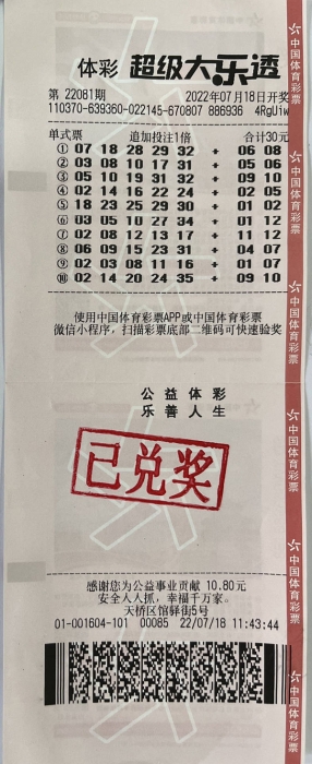 每一张体育彩票都是公益微光,每2元一注的体彩大乐透就有0.72元成为体彩公益金,为国家体育事业和社会各项公益事业发展注入力量。不少购彩者奉献爱心的同时,收获了中奖带来的欢乐与惊喜。小梦想,大乐透,期待您的参与。