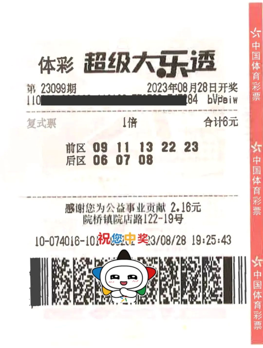 8月28日,体彩大乐透23099期开奖,台州购彩者陈大爷喜中1注一等奖,收获奖金615万元。中奖彩票是一张6元3注的“5+3”复式票,可以说是“花小钱中大奖”。那么陈大爷是如何选中这组为他带来大奖的号码的呢?