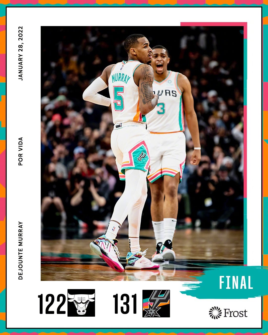 公牛客场挑战马刺,公牛近期逐渐回暖,取得2连胜目前高居东部第二,也仅落后身前的热火半个胜场差。马刺本赛季整体表现不佳,但是穆雷有着非常出色的个人表现。一开场,马刺开局领先,公牛后来居上,打出10-0的攻击波反超比分,首节结束公牛领先6分。次节比赛,马刺打出8-2的攻势再度反超,公牛在拉文和德罗赞的带领下多点开花夺回优势,半场战罢公牛68-63领先5分。易边再战,公牛命中率明显下滑,马刺趁势连续打出进攻高潮反超比分,三节打完马刺握有7分领先。第四节,马刺先把分差拉开到两位数,公牛一波15-4将分差迫近到2分,凯尔登连得6分稳住局势,拉文低级失误葬送比赛。最终,马刺力克公牛,主场过关。