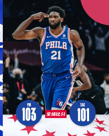 76人近来状态不错取得3连胜,国王则是惨遭5连败。开场后国王外线首先展现手感连中三分,76人靠着哈里斯和库里的发挥迅速追上比分,首节国王稍稍取得领先。第二节上来76人仍旧失误较多,国王连续打出攻势建立领先,76人整体手感并不理想,但他们通过多次制造罚球也没有让分差被继续拉大,上半场国王61-50领先。下半场回来恩比德开启得分模式接连砍分,在他的带领下76人找到状态将比分追上。第四节国王整体状态低迷,仅有哈利伯顿有手感能够拿分,76人则在马克西、恩比德和哈里斯的轮番发挥下完成反超并建立起两位数优势,哈利伯顿最后爆发帮助国王追上比分,但巴恩斯错失绝杀三分,最终76人103-101逆转国王取得4连胜,国王遭遇6连败。
