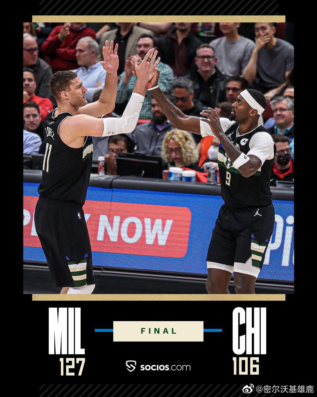 公牛主场迎战雄鹿,公牛目前45胜33负排在东部第5位,而雄鹿则是48胜30负名列东部第3,本场比赛拉文印因伤缺阵。开局双方命中率都不高,公牛更是陷入得分荒,雄鹿内外多点开花打出小高潮一举确立领先,怀特的三分帮助公牛紧急止血,次节字母哥终于找到手感,联手米德尔顿将分差一度拉开至近20分,节末德罗赞体现领袖本色帮助公牛追到差12分。第三节雄鹿进攻端继续施压,接连外线三分将分差拉开至20分以上,而公牛则依靠三分加上德罗赞的强打咬住10分左右分差,末节字母哥接连攻击内线帮助雄鹿牢牢掌握住十几分领先优势,公牛多次试图反扑但无果,雄鹿越打越好将分差重新拉开至20分以上,公牛大势已去,最终雄鹿力克公牛。