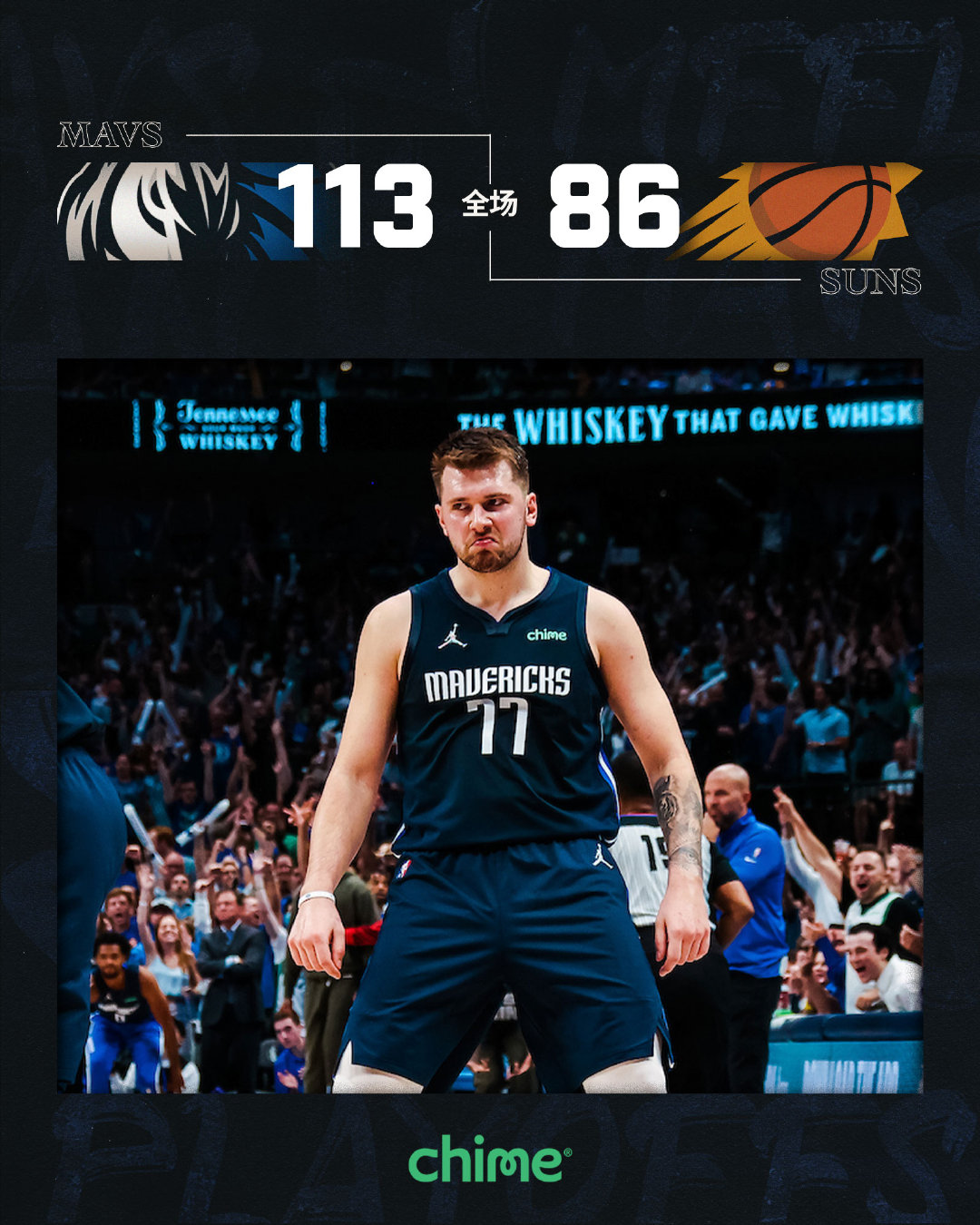 第三节独行侠在东契奇连拿6分中确立起20分左右的领先,随后纵使太阳使出万般手段但始终无法阻止对手;末节独行侠虽然长达5分钟里仅拿到2分,但手握大比分领先的他们就是压节奏耗时间并成功遏制住对手反扑,正是凭借出色防守他们生生扼杀了对手的最后希望。最终,独行侠主场大胜太阳将系列赛拖入抢七,总比分上3-3战成平手。