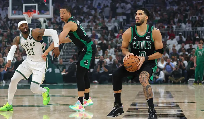 凯尔特人在常规赛以51胜31败的战绩排名东部第二。其中三分命中率35.6%,凯尔特人队在季后赛中有55% 的掩护换防,这是所有季后赛队伍中防守最高的,值得注意的是半决赛他们调整了他们的挡拆覆盖率。凯尔特人队比密尔沃基雄鹿队多投了53个三分球。这是NBA历史上季后赛系列赛中最大的差异。凯尔特人队在季后赛投出110个三分球。
