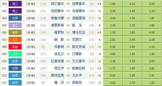 竞彩足球11月20日共有13场比赛受注,主要赛事由荷乙、德乙以及意甲、英超、西甲三场独角戏等比赛组成,比赛不多,重点比赛有维罗纳VS博洛尼亚、布赖顿VS斯托克城、埃瓦尔VS贝蒂斯,本轮联赛最后三场收尾战,将会打出什么样的结果;巴甲距离本赛季结束仅剩3轮,球队战意将如何值得关注。