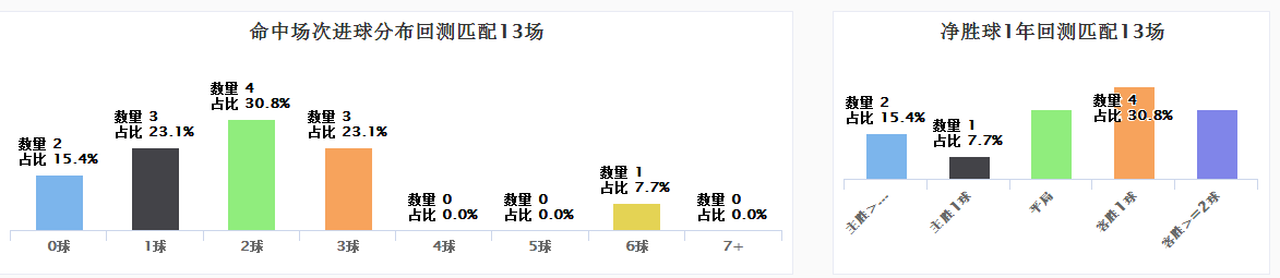 从命中场次回测来看全场2球概率最高。在净胜球回测中客胜1球最高,其次是客胜大于等于2球和平局。结合Spdex超级指数独家Q系统和早盘Spdex超级指数数据来看客队不败。