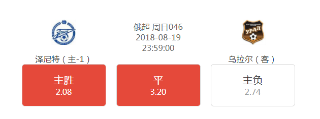 竞彩周日046俄超推荐: 泽尼特VS乌拉尔