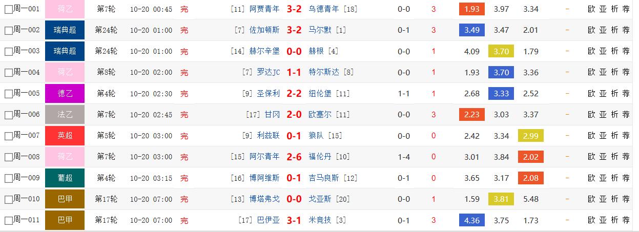 昨日竞彩足球13场!早场方面,荷乙阿贾青年力擒对手取胜,罗达主场被对手逼平,福伦丹则是在客场大胜对手,而在瑞典超方面,马尔默客场爆冷不敌对手,赫根同样也是没能战胜对手,德乙方面,圣保利战平对手,而英超方面,利兹联主场不敌对手,而我们的专家老师的发挥依旧是相当的稳定:
