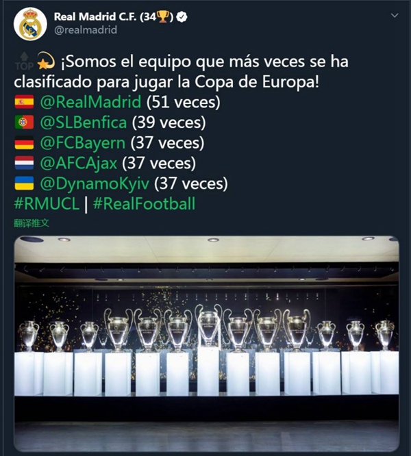 本周三皇家马德里开启新赛季的欧冠征程,这将是皇家马德里第51次参加欧冠赛事。从1955年欧冠赛事开始以来,皇马已经获得了13次冠军,在欧冠赛事中的比赛场次也要多于任何球队。遗憾的是,上赛季欧冠半准决赛争夺战中被曼城双杀,早早就止步于16强,本赛季一定会全力以赴向第14个冠军发起冲击。