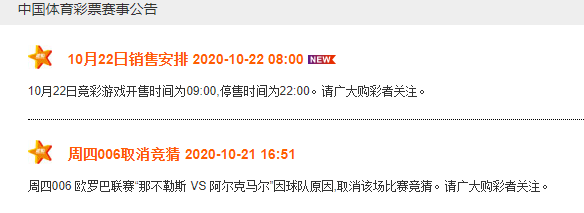 周四006 欧罗巴联赛“那不勒斯 VS 阿尔克马尔”因球队原因,取消该场比赛竞猜。请广大购彩者关注。