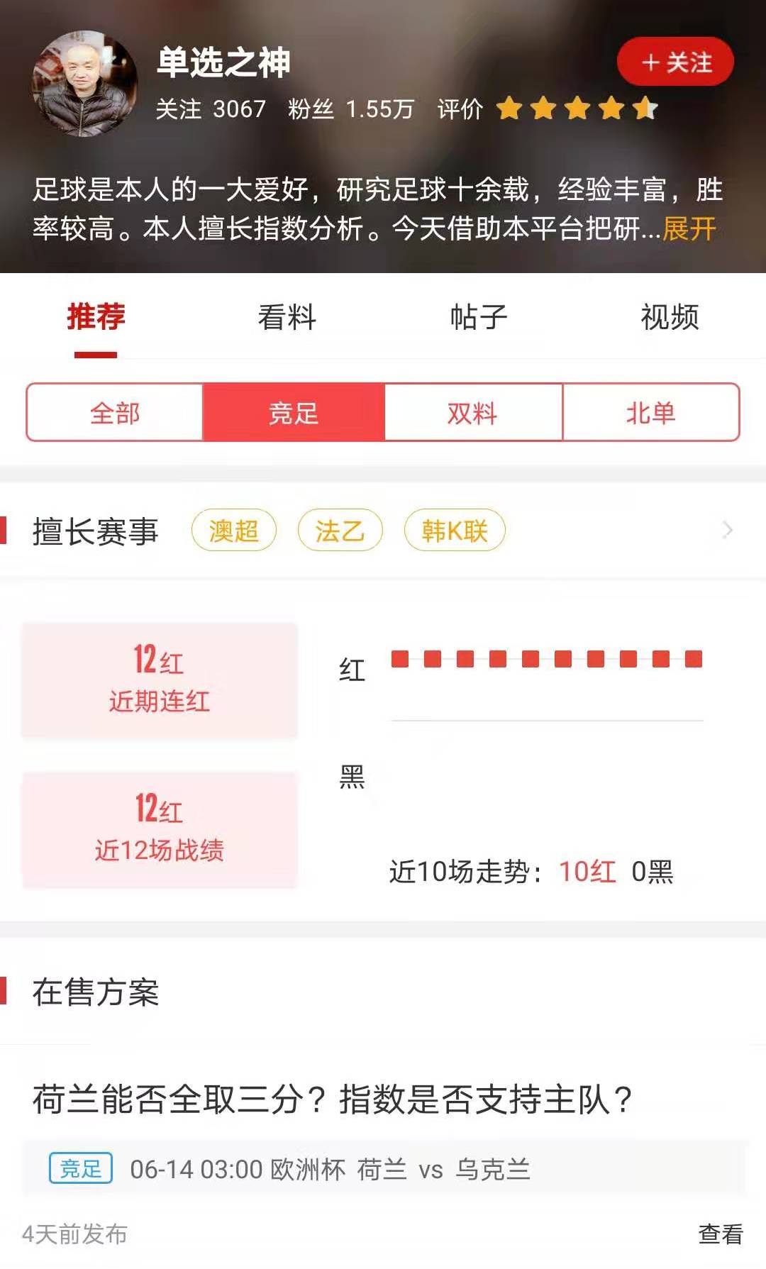 单选之神(点击进入主页)足球是本人的一大爱好,研究足球十余载,经验丰富,胜率较高。本人擅长指数分析。今天借助本平台把研究的结果分享予大家,希望带给大家更多红单。