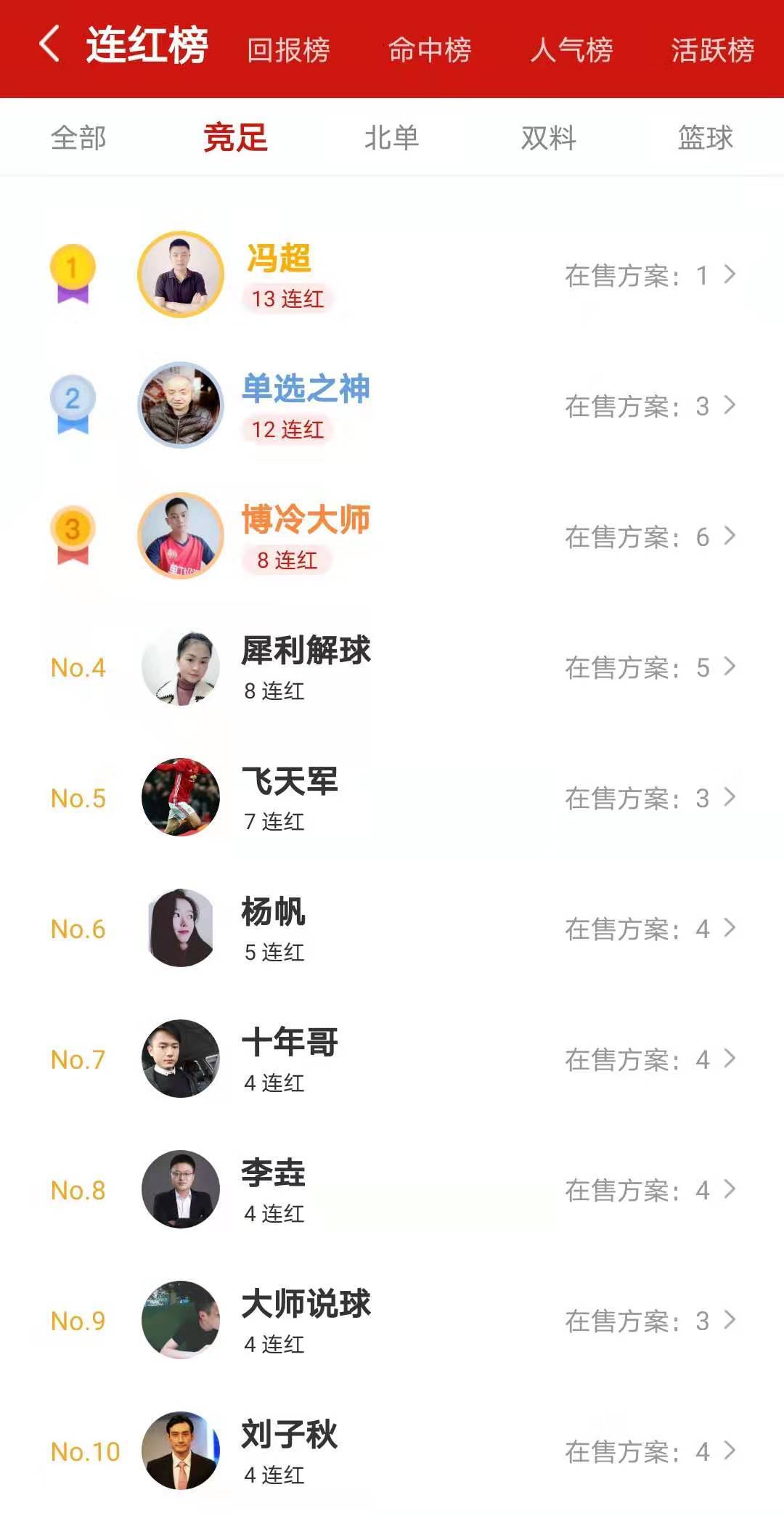 此外,昨日多位专家收获长连红走势,冯超13连红,博冷大师8连红,飞天军7连红,杨帆5连红!众多专家在线送胆!跟上就是赚到!速来红单一起盈利!