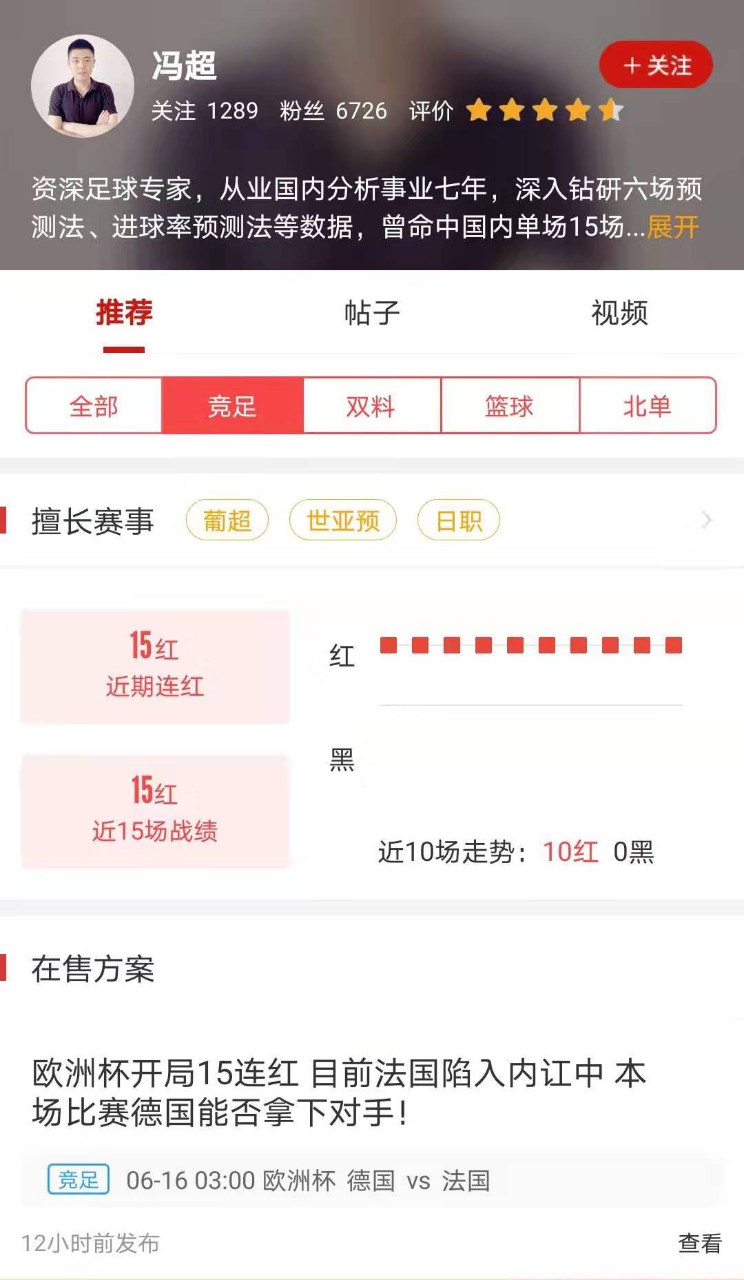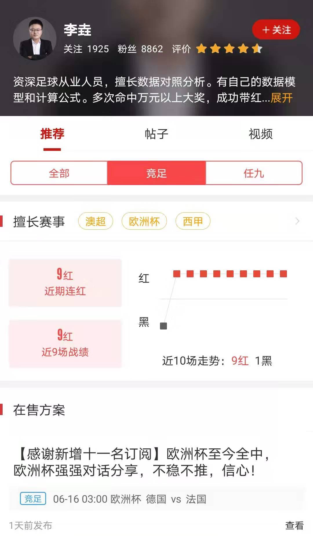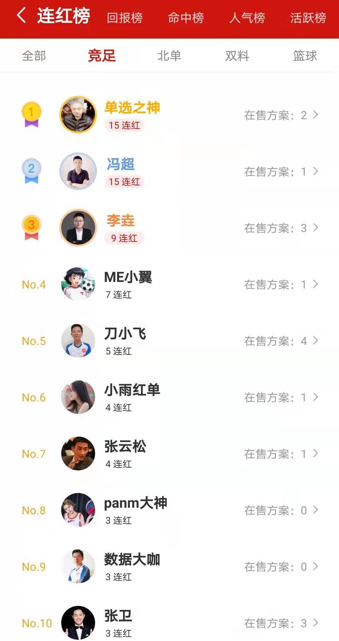 此外,昨日多位专家收获长连红走势,单选之神15连红,ME小翼7连红,刀小飞5连红,小雨红单4连红,张云松4连红,panm大神3连红,数据大咖3连红,张卫3连红!众多专家在线送胆!跟上就是赚到!速来红单一起盈利!