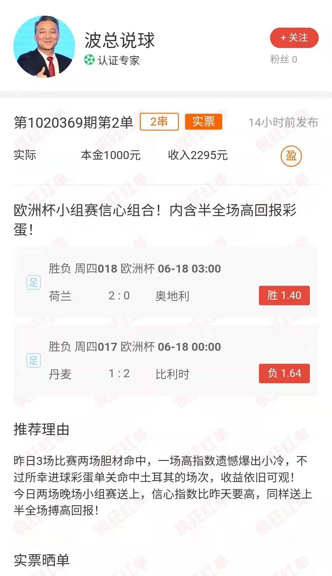 红单专家『黄师傅』状态火热,昨日4场单关推荐均稳稳命中,已经来到11连红!还有红单计划师『波总说球』昨日荷兰+比利时的两串成功打出盈利,士气正盛!下面让我们来看看红单大神们的出色表现。