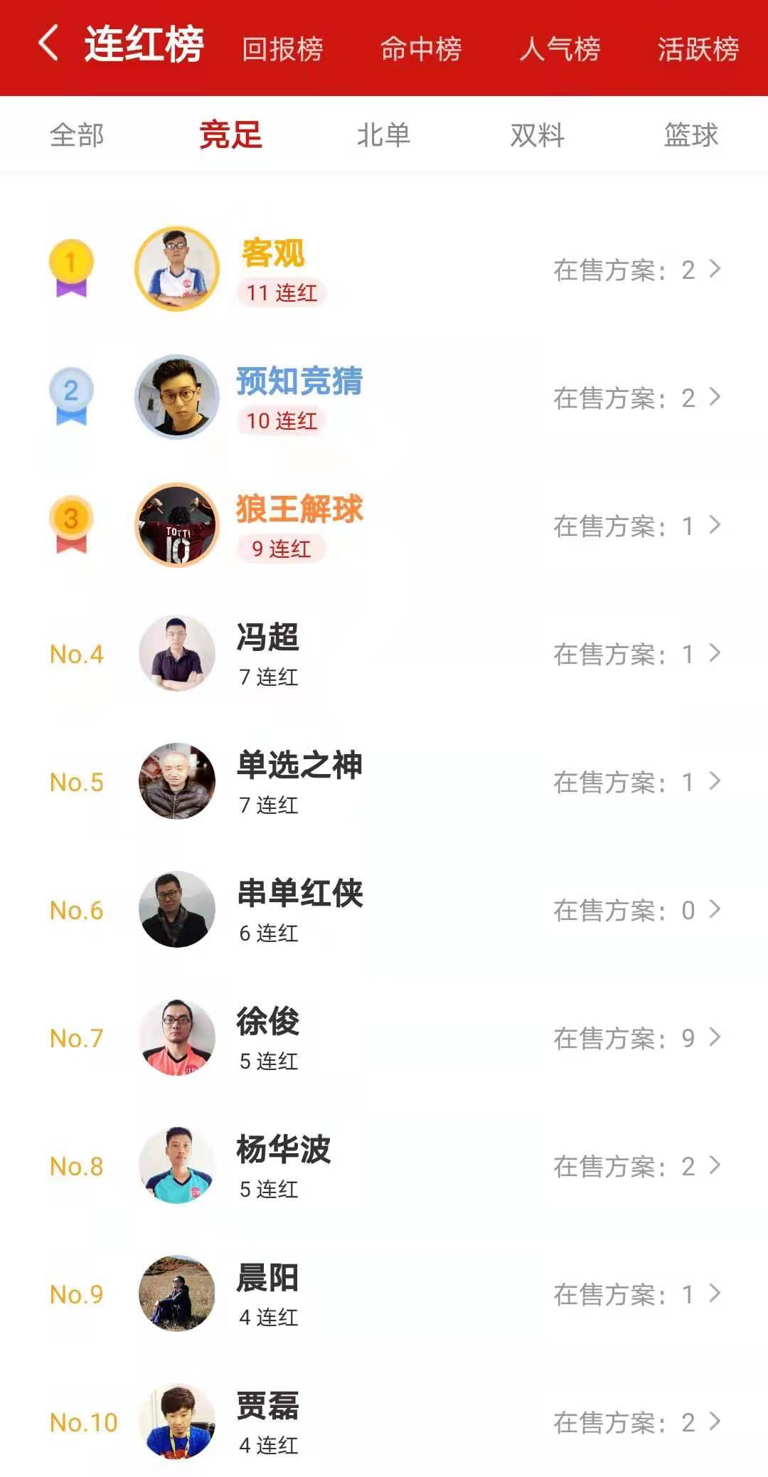 此外,昨日多位专家收获长连红走势,预知竞猜10连红,狼王解球9连红,冯超7连红,单选之神7连红,串单红侠6连红,徐俊5连红,杨华波5连红,晨阳4连红,贾磊4连红!众多专家在线送胆!跟上就是赚到!速来红单一起盈利!