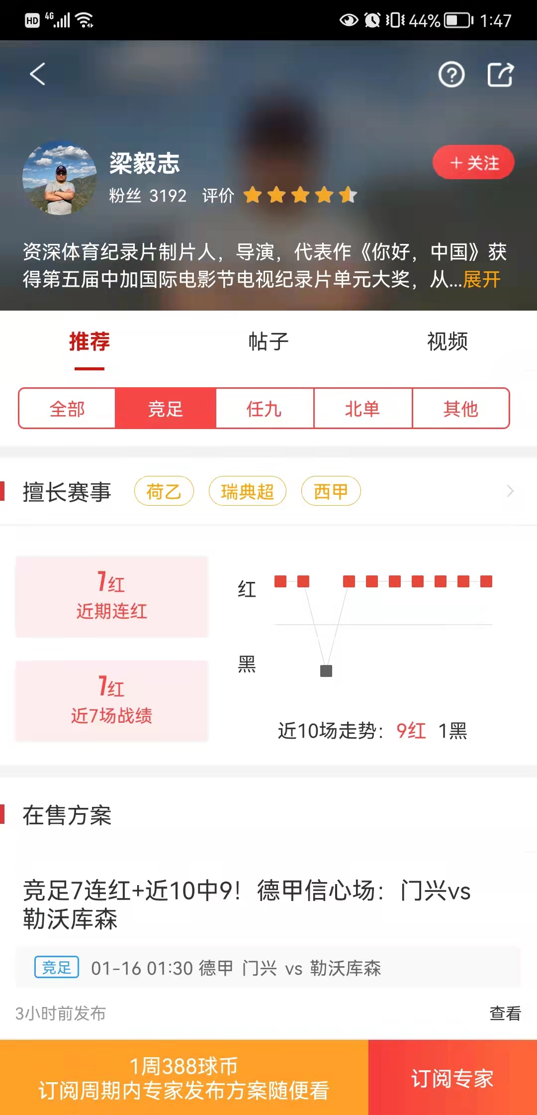 红单专家『潘涛』昨日状态火热,竞足推荐6连红稳健盈利!还有专家『梁毅志』竞足7连红,士气高昂,回报率不低!下面让我们来看看红单大神们的出色表现。