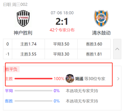 红单数据报告,有100%偏向了神户胜利,其中专家姚遥认为,球队本赛季表现非常糟糕,19场仅有3胜5平11负的成绩排名垫底,他们现在还落后降级区外的磐田喜悦5分,所以在赛程至半的情况下,球队需要尽快拿分,战意十足。清水鼓动排名日职联第17位,同样处于降级区,分数比神户胜利船多3分形势稍好。上一场球队3-5憾负横滨水手,队伍展现出极强的拿分欲望,但是实力有限。