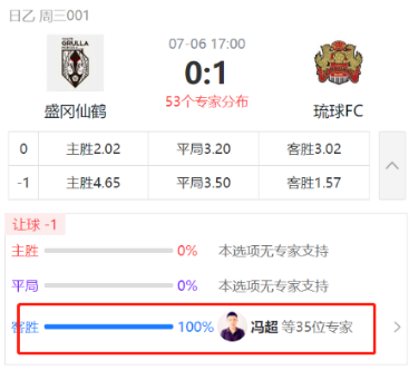 红单数据报告,有100%偏向了琉球FC,其中专家冯超认为,两队在日丙就有多次交手,近期10次交锋岩手盛冈仙鹤拿到3胜2平5负,心理层面并没有占据优势, 岩手盛冈仙鹤优势面是状态相比岩手盛冈仙鹤要好上许多,实力上也略胜一筹,结合这个背景,数据方面初始给出岩手盛冈仙鹤的让步,支持力度并不算大,综合分析后看好琉球FC能在客场至少拿到1分。