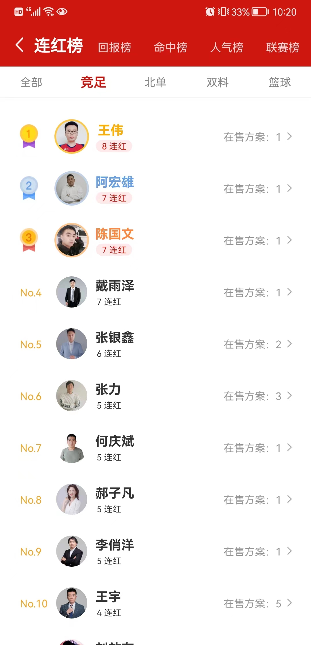 此外,昨日多位专家收获长连红走势,王伟8连红,阿宏雄7连红,陈国文7连红,戴雨泽7连红,张银鑫6连红!众多专家在线送胆!跟上就是赚到!速来红单一起盈利!
