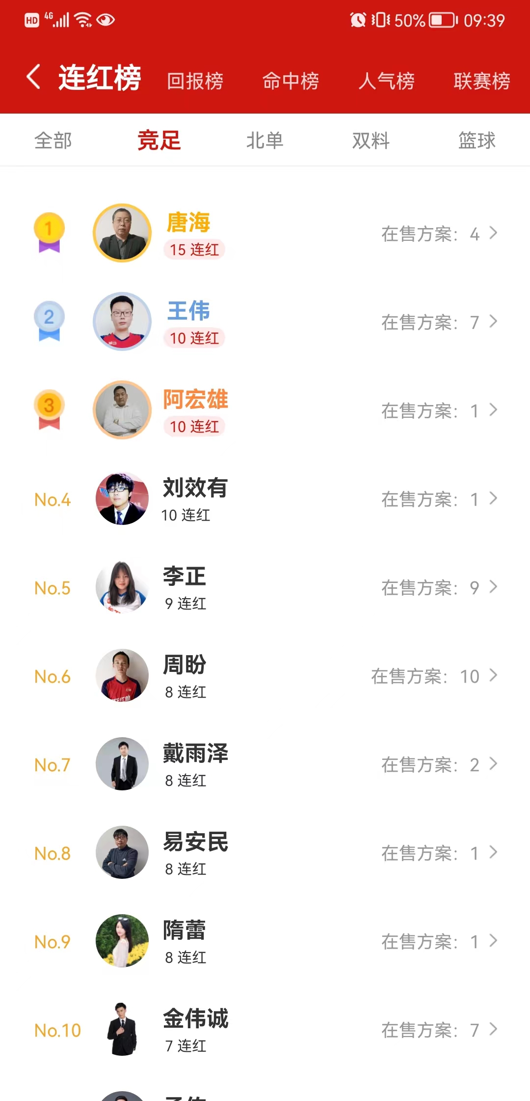 此外,昨日多位专家收获长连红走势,唐海15连红,王伟10连红,阿宏雄10连红,刘效有10连红,李正9连红,周盼8连红,戴雨泽8连红,隋蕾8连红,易安民8连红!众多专家在线送胆!跟上就是赚到!速来红单一起盈利!