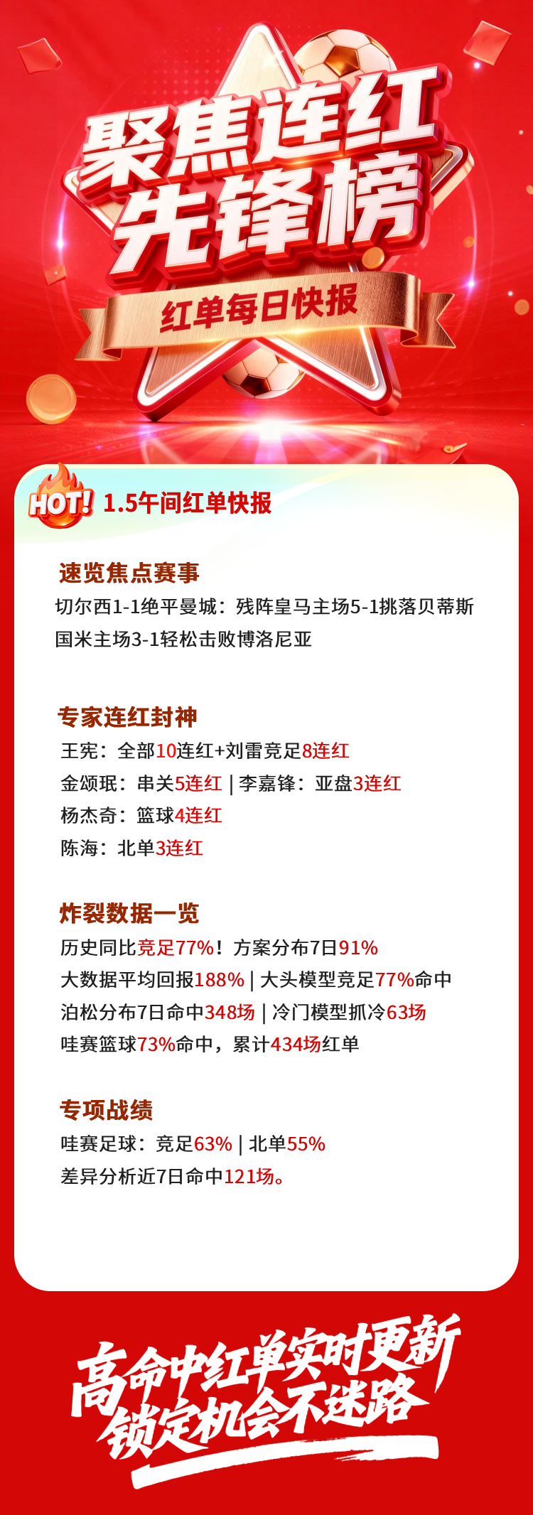 此外,昨日多位专家收获长连红走势。刘雷8连红,夏正超7连红,刘鹤7连红,任保辉6连红!众多专家在线送胆!跟上就是赚到!速来红单一起盈利!