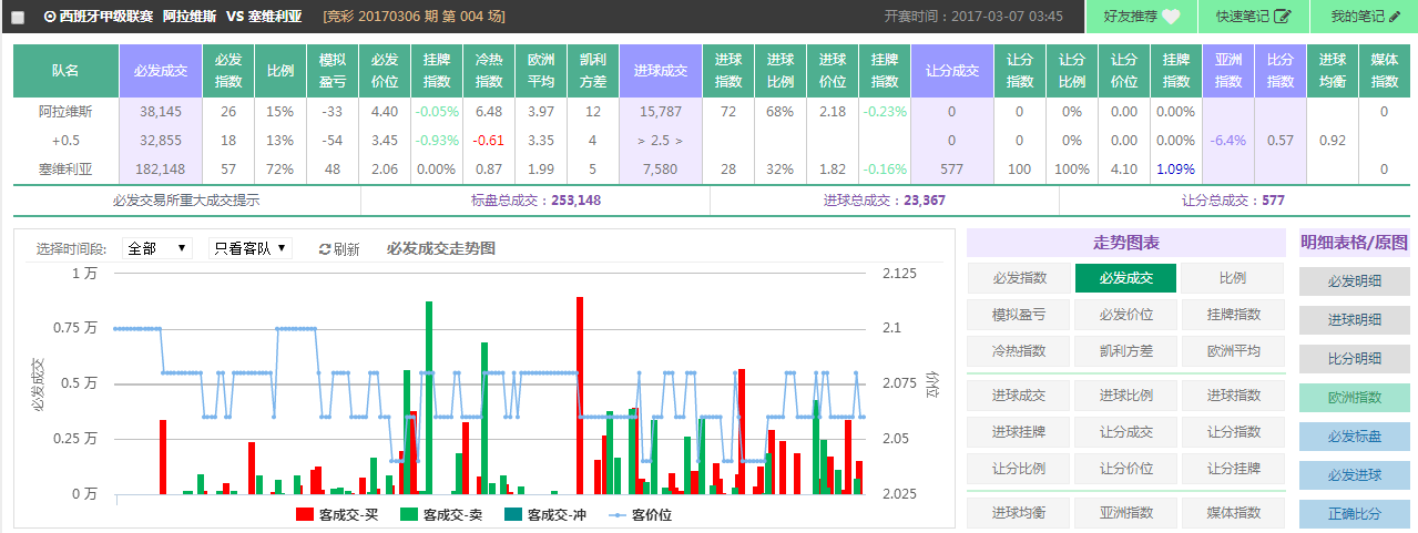 Spdex超级指数必发指数提示26-18-57早盘客胜明显占据资本市场的主力。标盘成交量25万多临场可能突破200万。Spdex超级指数提示早盘客胜出现买卖对冲后必发价位一直在2.07附近震荡。冷热指数平局和客胜始终没有拉开。凯利方差也是平局和客胜没有拉开。结合Spdex超级指数独家Q系统和早盘Spdex超级指数数据来看还是要防下盘打出。