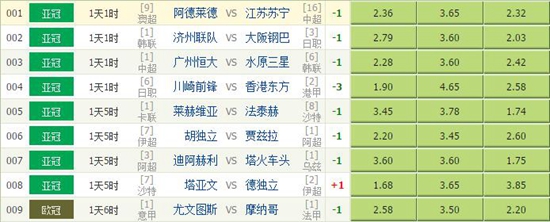 竞彩足球5月9日共有12场赛事受注,主要由亚冠、