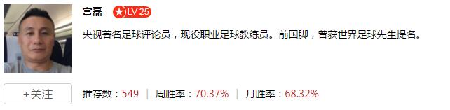 意甲卫冕冠军尤文图斯坐镇主场,迎接法甲领头羊摩纳哥的挑战,两队的首回合较量,尤文客场2比0完胜,本场摩纳哥能否翻盘?宫磊对赛事把握极度精准,有绝对的信心值得你跟单。当然,你也可以登陆专家推荐页面,查看更多其他专家的推荐方案,他们的选择都值得你参考。