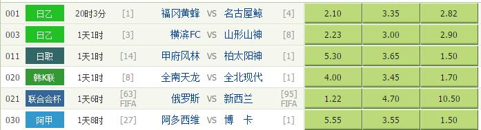 竞彩足球6月17日共有42场赛事受注,由日乙、日职、阿甲、美职足等赛事组成。2017联合会杯揭幕战,东道主俄罗斯在圣彼得堡主场对阵新西兰。俄罗斯进行的联合会杯是世界杯的前哨赛,本届有8支来自各大洲的队伍参赛,分组赛分为A、B两组进行单循环,每个小组积分前两名进入4强淘汰赛,东道主俄罗斯和葡萄牙、墨西哥、新西兰同属A组。本场比赛俄罗斯能否取得揭幕战胜利,大家拭目以待!