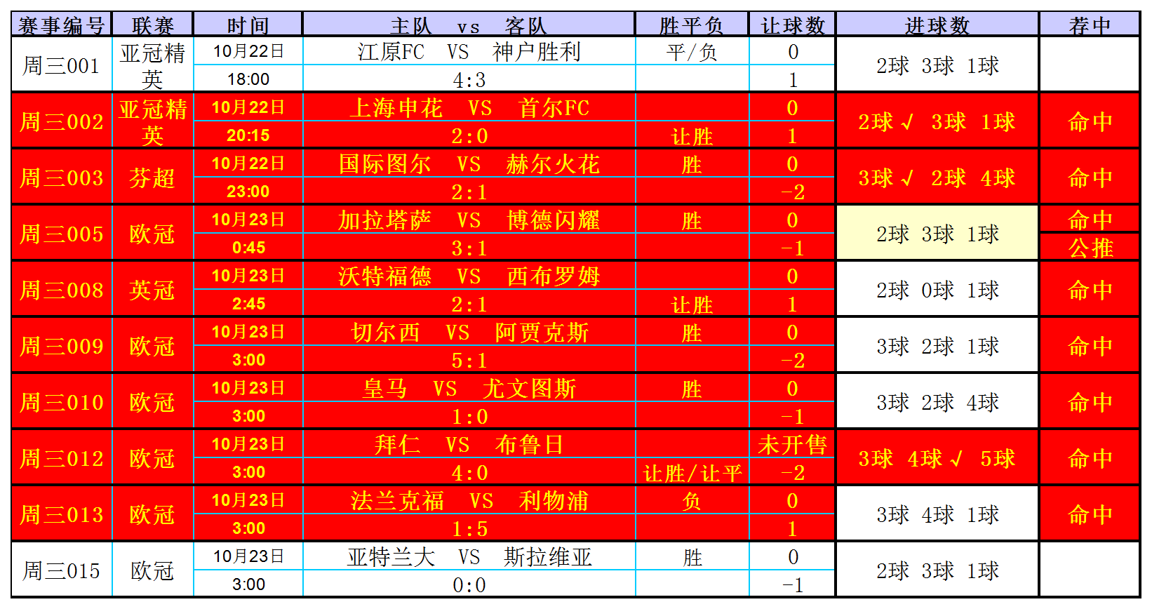 回顾昨日扫盘战绩,堪称高光时刻!我们精心筛选的 10 场焦点赛事,最终交出 8 场方向精准荐中的亮眼答卷,超高荐中率引爆球迷圈!从联赛焦点战到冷门逆袭局,每一场推荐都基于深度数据拆解、球队状态追踪与战术前瞻分析,用专业实力兑现精准预判。无论是资深球迷还是赛事投资爱好者,都通过我们的扫盘收获了满意结果,口碑见证实力,战绩说明一切!