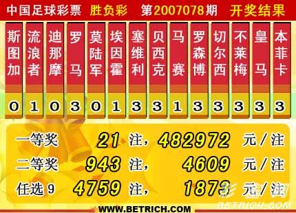 ���� �й������Ʊʤ���ʵ�07078����ѡ9������������һ�Ƚ�4759ע��ÿע����1873Ԫ����������13931818Ԫ��