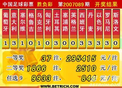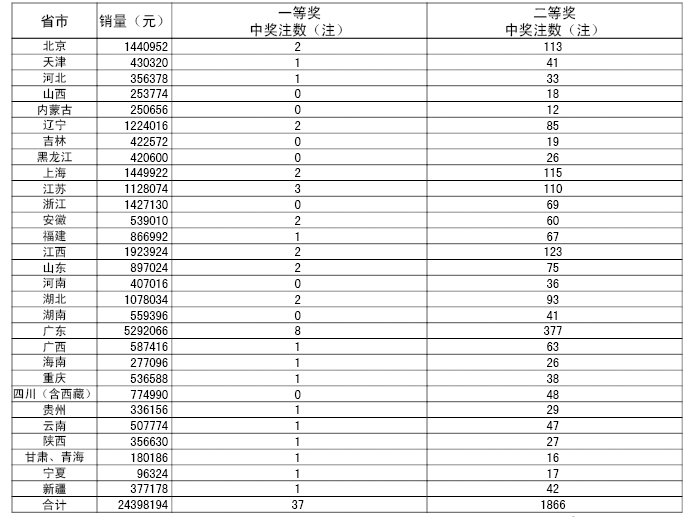�����й������Ʊʤ���ʵ�07089�ڿ���������һ�Ƚ�37ע��ÿע295415Ԫ�����Ƚ�1866ע��ÿע2510Ԫ����������24398194Ԫ����ѡ�ų�������һ�Ƚ�9933ע��ÿע844Ԫ����������13107878Ԫ��