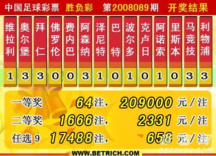 �����й������Ʊʤ���ʵ�08089�ڿ���������һ�Ƚ�64ע��ÿע����209000Ԫ�����Ƚ�1666ע��ÿע2331Ԫ������ʤ����ȫ��������20227432Ԫ������4314124.29Ԫ���汾��һ�Ƚ����ء���ѡ9������������һ�Ƚ�17488ע��ÿע658Ԫ��������ѡ9��ȫ��������17996118Ԫ��
