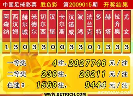 �����й������Ʊʤ���ʵ�09015�ڿ���������һ�Ƚ�4ע��ÿע2827746Ԫ�����Ƚ�230ע��ÿע20211Ԫ������ʤ����������Ϊ��24212206Ԫ��ѡ�ų�����������һ�Ƚ�1569ע��ÿע9444Ԫ��������ѡ�ų�������Ϊ��23153270Ԫ��