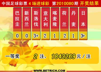 �����й������Ʊ4��������Ϸ��10080�ڿ������������һ�Ƚ�2ע��ÿע����1843269Ԫ�����ڽ����������Ϊ��5760216Ԫ��