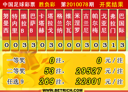 �����й������Ʊ��10078�ڿ���������һ�Ƚ�0ע��ÿע0Ԫ��3651606.78Ԫ�������ڡ����Ƚ�53ע��ÿע29527Ԫ����������8150908Ԫ����ѡ9������������һ�Ƚ�269ע��ÿע22301Ԫ���������� 9373578Ԫ��