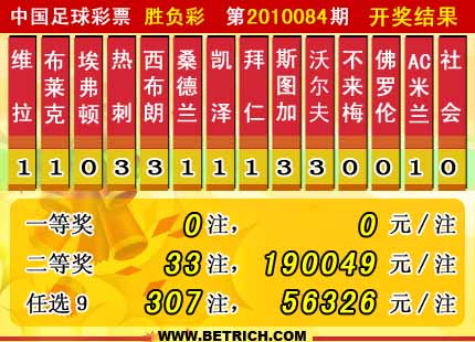 �����й������Ʊ��10084�ڿ���������һ�Ƚ������г������Ƚ�33ע��ÿע190049Ԫ����������32664742Ԫ����ѡ9������������һ�Ƚ�307ע��ÿע56326Ԫ���������� 27019204Ԫ��