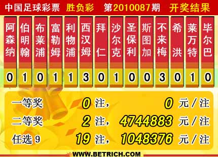 �����й������Ʊ��10087�ڿ���������һ�Ƚ������г���33232958.552Ԫ��������ͷ�����ء����Ƚ�2ע��ÿע4744883Ԫ������ʤ����ȫ��Ͷע�ܶ�Ϊ��49425874Ԫ��10086��11090167Ԫ���뱾��ͷ�����ء���ѡ9������������һ�Ƚ��г�19ע��ÿע1048376Ԫ��������ѡ�ų�ȫ��������Ϊ��31123664Ԫ��
