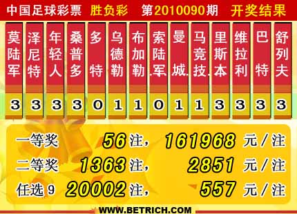 �����й������Ʊ��2010090�ڿ���������һ�Ƚ�56ע��ÿע161968Ԫ�����Ƚ�1363ע��ÿע2851Ԫ����������20246014Ԫ����ѡ9������������һ�Ƚ�20002ע��ÿע557Ԫ����������17420622Ԫ��