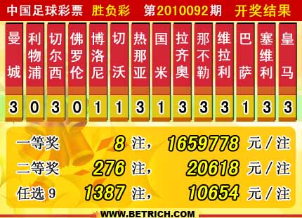 �����й������Ʊ��10092�ڿ���������һ�Ƚ�8ע��ÿע1659778Ԫ�����Ƚ�276ע��ÿע20618Ԫ����������29638898Ԫ����ѡ9������������һ�Ƚ�1387ע��ÿע10654Ԫ���������� 23091050Ԫ��