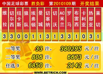 �����й������Ʊ��10109�ڿ���������һ�Ƚ�33ע��ÿע380295Ԫ�����Ƚ�806ע��ÿע6673Ԫ����������28012818Ԫ����ѡ9������������һ�Ƚ�6850ע��ÿע2142Ԫ����������22933136Ԫ��