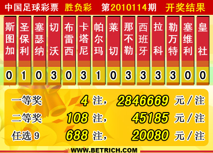 �����й������Ʊ��10114�ڿ���������һ�Ƚ�4ע��ÿע2846669Ԫ�����Ƚ�108ע��ÿע45185 Ԫ����������25416694Ԫ����ѡ9������������һ�Ƚ�688ע��ÿע20080Ԫ���������� 21586928Ԫ��