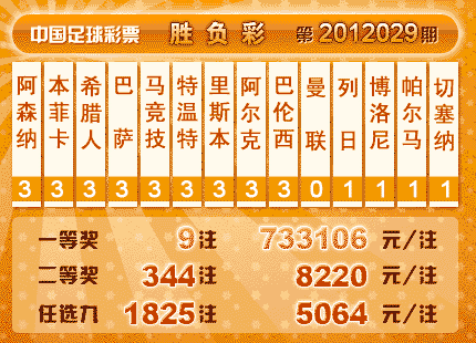 �й������Ʊ��12029�ڿ���������һ�Ƚ�9 ע��ÿע733,106 Ԫ�����Ƚ�344 ע��ÿע 8,220Ԫ��������14,727,580Ԫ����ѡ9������������һ�Ƚ� 1825ע��ÿע 5,064 Ԫ�������� 14,442,442Ԫ�� �й������Ʊ6����ȫ����12030�ڿ�����һ�Ƚ� ע��ÿע Ԫ������������ 709,434 Ԫ�� ʤ���ʰ�ȫ���ʹ��� �� �� ��