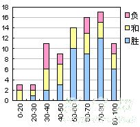 ����0-20��20-30��30-40��������������������䡣0-20����¼��2ƽ1����20-30����¼��1ʤ1ƽ1������6�������н���һ�������������������������ȺͰ��ʣ�����5����������ȡ�ã��ɼ���ӿͳ���¼�õ�ָ��������Ӯ����ᡣ30-40����¼��2ʤ4ƽ5������ǰ��������һ�����ͳ�����¼��������������ʤ�̾���������¼�á���������������־���������������Ӧ��ǿ����ָ�����ڵ�ָ�����䣬��Ӻ����ڿͳ����ܶ��֡�