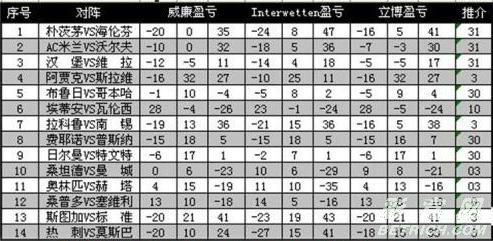 ����AC����VS�ֶ�������ƽ��ӯ��Ϊ0ֵ������ƽ��ӯ��Ϊ��ֵ����������սƽ�Ŀ��ܲ�С��AC�����Ѿ����ߣ����ǽ��Ѿ���������ڱ���ĩ�������С���³��Vs�籾��������ӯ��Ϊ��������̬��Interwetten��ʤӯ���߳�0ֵ���࣬���д����ʤ�Ŀ��ܡ��ն���VS�����أ�ӯ��ָ��Ϊ��������̬������ʤӯ����Ϊ�ϵ͵�1�����˫ѡ����30��ɣ̹��VS���ǡ�����ƥVS������������ʤӯ��Ϊ��������ͣ���ʶ�����ѡ0��