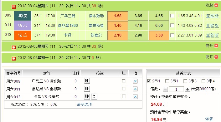 �����ع��������£� ��������3�����µ��Ƽ���2��1���ճ�������ɫ��������3�������𣬷���ɫ���ٳ�ƽ�֣��ϰ볡ɫ���������ȣ���ϧ�°볡��ʼ10����ɳ��³���һ����ƭ��������Ա�ķ���ս�ߣ�˫��1:1��ƽ֮������߸������������Ժͣ� ����1��Ľ���1860VS��˹�����Ƽ���3���ص��Ƽ� ָ���������� ����ʨ������ϣ����������˹����ŵ���г�ʩ��������գ�����������������棨24/5���������ɣ�30/11����ӡ��������ŵ����˹����������ŵΪ��˧���ϼ���������6����ӣ�����ʧѪ��Ľ���1860�ڵ��ҳ����˼������������ս���Ѿ������ȶ������������������������������������5�֣������л������¼ף�������ӽ�����һĿ���ٶȷ����������ֶ�����ֻ����������ӣ���������ӱ��ֲ��״̬�����´�ս���˸߿��� ������������ָ����1.44��4.00��7.00��������ս��1ʤ0ƽ0���� ������ʤ������ָ����1.50��4.00��5.30��������ս��1ʤ0ƽ1���� ��������Ƽ����ӣ�http://news.c6nkl.com/news/3/2012-08-04/402872.shtml ����2������VSŷ�������Ƽ���30�� �����������������˰���˹��ǰ�沨Ү�ء���˹���г����������Լ�������������ά�������Ա��Ϊ������ŷ������ս��ݣ��г���Ԯ����������ӽ�����ǰ���������˷ֱ�����������ս����״̬���ѵ�ŷ����������������ɴ�����ͣ����������ǩ����Ǽ�ս������ķ���������Lȱ���м��������ȱϯ������������ɣ���ŷ������������������û�������˱��������ڽ�ĻսӮ2��0�쿪��ʤ������������ʤ�����ݳ����� ������������ָ����2.30��3.00��3.10��������ս��1ʤ2ƽ2���� ������������ָ����2.25��3.00��2.95��������ս��4ʤ2ƽ2���� ��������Ƽ����ӣ�http://news.c6nkl.com/news/3/2012-08-04/402874.shtml ����3���㵺����VS��ˮ�Ķ����Ƽ���3�� �㵺��������״̬����������8�ֲ��ܣ����ҽ���һϵ��Ӳ�̵��й������dz����ڣ���������2�����ϣ�������3�ֲ�ʧ��״̬�쳣��ɫ����������ˮ�Ķ��������෴��9�ֲ�ʤ�����ں��ʧ������������ԭֱ̩�Ŵ��˷ѻ����ܵ�ָ��A. ����˹��Ҳ��״̬���ѡ� ������������ָ����1.67��3.40��5.00��������ս��7ʤ0ƽ1���� ������������ָ����1.61��3.50��4.50��������ս��7ʤ7ƽ2���� ��������Ƽ����ӣ�http://news.c6nkl.com/news/46/27/2012-08-04/402855.shtml Ͷע��ͼ���£�
