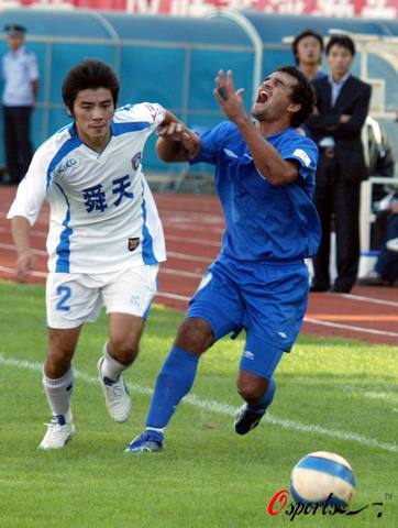 ����2006��9��9��15��00���м׵�19���ൺ���Ŷ�����˴�졣���վ���90���ӵĽ�������������2-1սʤ�����������ȵ��塣ͼΪ��Ԯ����ʹ��״��